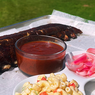 • Cold sides dishes including Home Made Potato Salad, Mac Salad, Cole Slaw